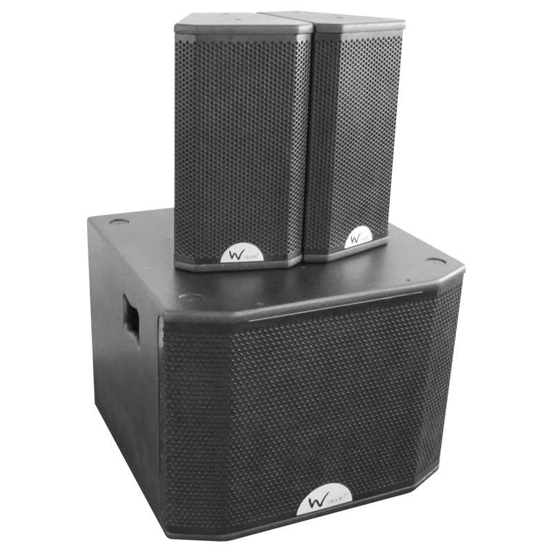 A simple to use system which includes a single bass bin and two 6″ speakers on stands. The unit has a built in amplifier. Simply plug in your ipod, laptop or dj kit and you are away.