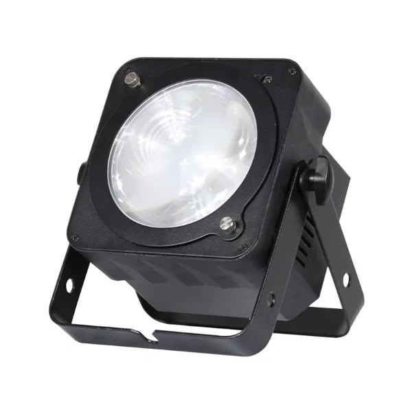 A colour changing 36W tri-colour COB LED (RGB) with floor stand. Ideal for uplighting marquees or for lighting performers from the floor.